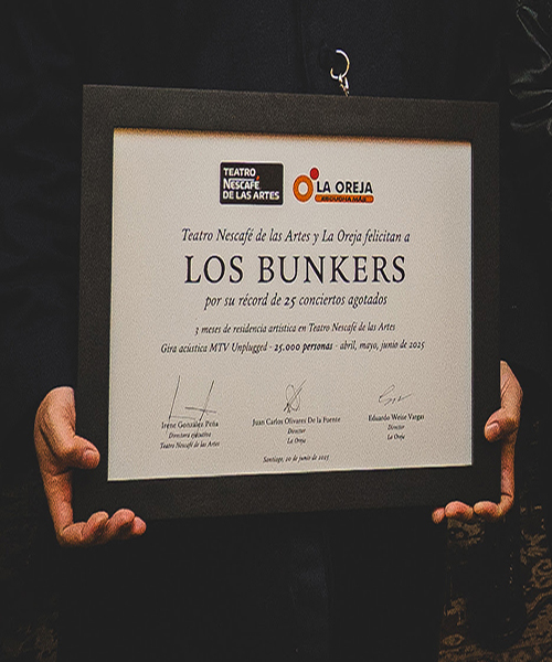 “Para nosotros como La Oreja es absolutamente inédito, en nuestros 23 años de producción, realizar una residencia artística de 25 conciertos. Felicitamos a Los Bunkers por este hito en la música chilena y al Teatro Nescafé de las Artes por ser parte de un programa completamente agotado desde hace meses”, menciona Juan Carlos Olivares, director de La Oreja.